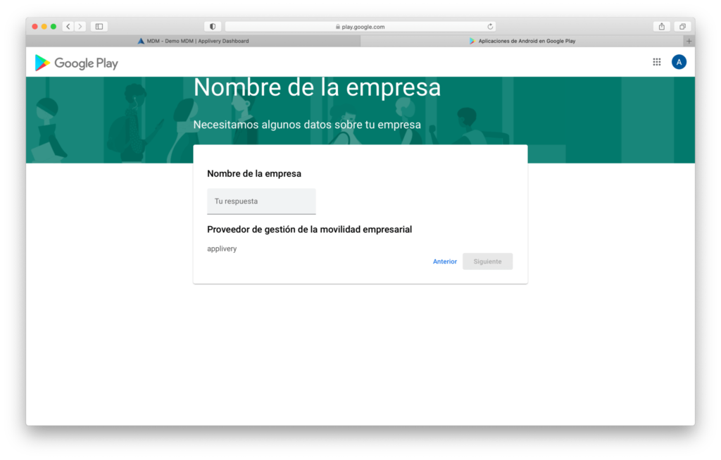 To begin managing Android Devices with Applivery, the first step is to set up an Android Enterprise organization. This links your company to Google’s Android management infrastructure, allowing Applivery to securely deploy Apps, apply Policies, and control Devices across your fleet.